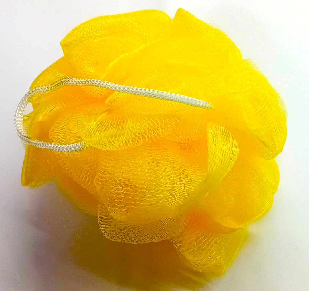 Massage Color – Spugna corpo a rete in pochette, in polietilene, colore GIALLO , 55g