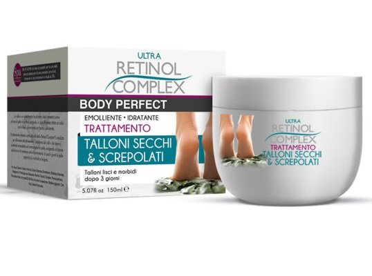La pelle screpolata sul tallone si presenta con piccole spaccature antiestetiche che si verificano quando la cute è secca e danneggiata.Il trattamento emolliente per talloni della Retinol Complex® è studiato per idratare intensamente le zone secche e screpolate del piede. La nostra crema aiuta il naturale processo di rinnovamento della pelle e crea una barriera che previene la formazione di spaccature ammorbidendo i talloni e migliorando l’elasticità della pelle.